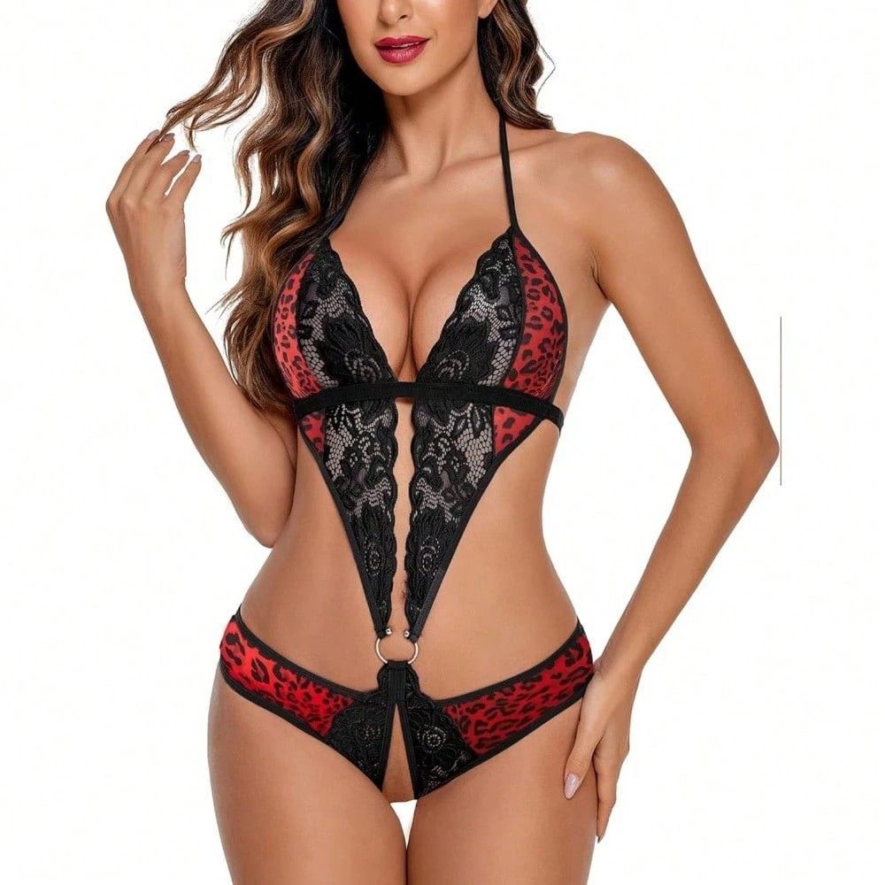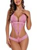 European and American Sexy Lace Thong-Style Open-Crotch Bodysuit with Front-Closure